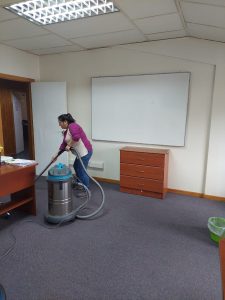 Limpieza de mobiliario, baños, escaleras y ascensores, retirada y eliminación de residuos, entre otros.